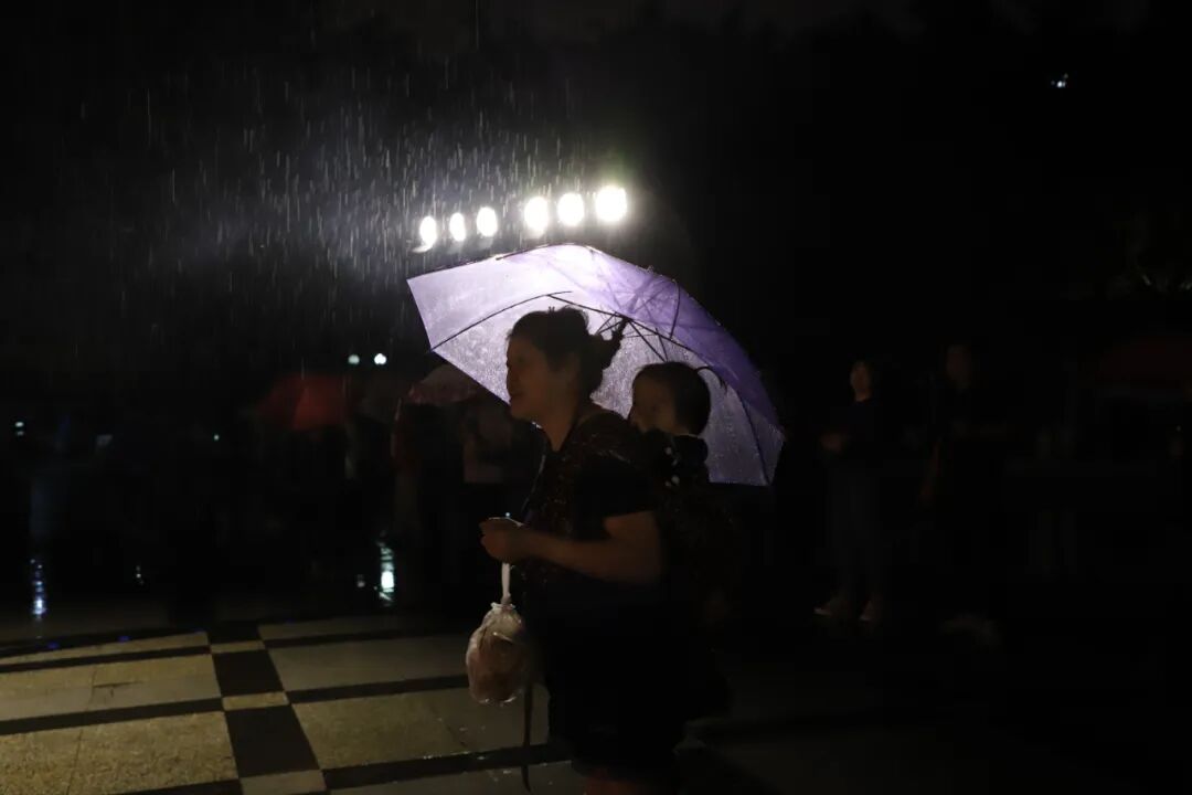 虽然现场当日伴随着阵阵秋雨,但是丝毫没有影响社区居民们的热情。他们有的撑伞站在雨中,有的或站或坐在广场的休憩长廊之中,津津有味地观看着戏剧演出,现场时时传来的居民们的笑声与掌声。这份热情无疑是对公艺派和演员们最大的鼓励。