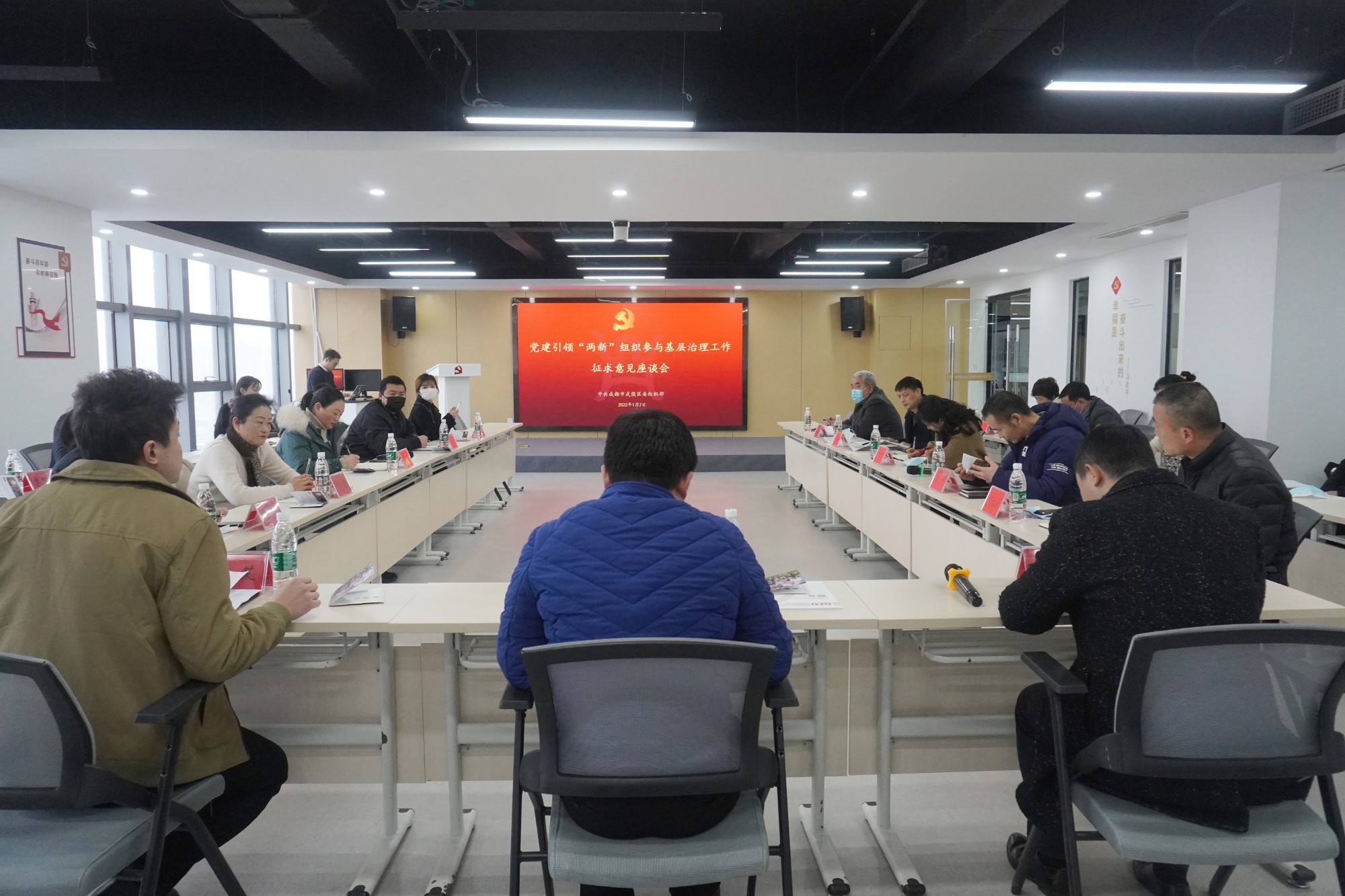 2022年1月7日,中共成都市武侯区委组织部召开党建引领“两新”组织参与基层治理工作征求意见座谈会,区委组织部部务委员王劲峰主持会议。企业、街道、社区三方共同探讨搭建“两新”组织参与基层治理的平台路径,重点讨论利用慈善信托探索党建引领“两新”组织参与基层治理的创新探索。